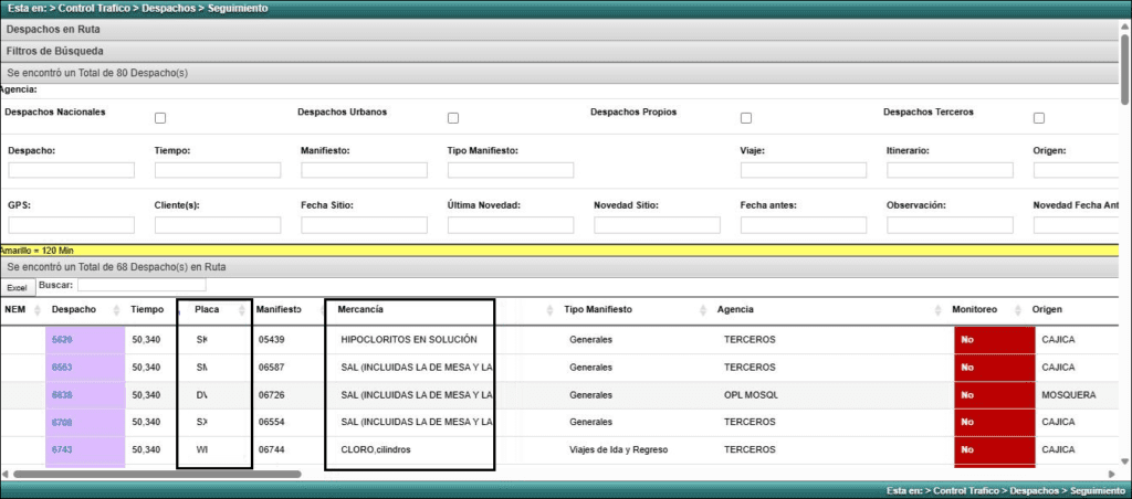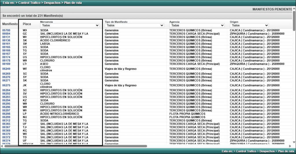 - Ubicación optimizada de la columna “Placa”: Ahora podrá verla justo después del “Manifiesto”, facilitando la identificación del vehículo asociado.