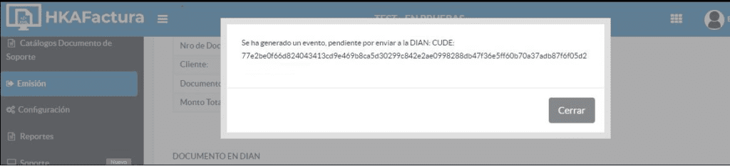 • Como este es un proceso asíncrono, se recomienda esperar aproximadamente 10 minutos para que la DIAN procese la solicitud.