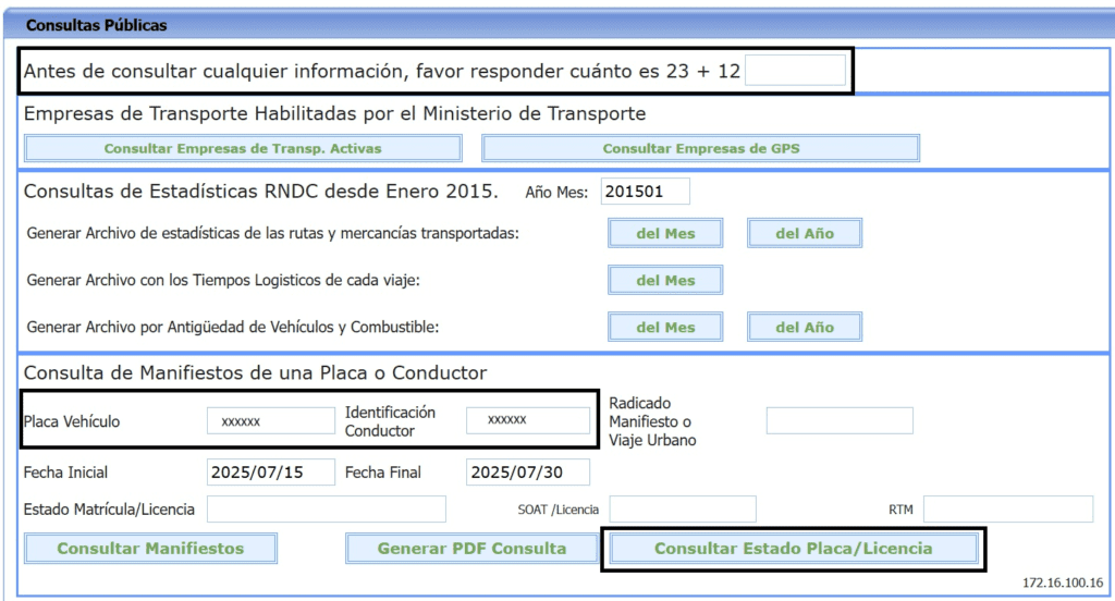 - Consultar en la plataforma pública del RNDC el estado de la cédula del conductor.